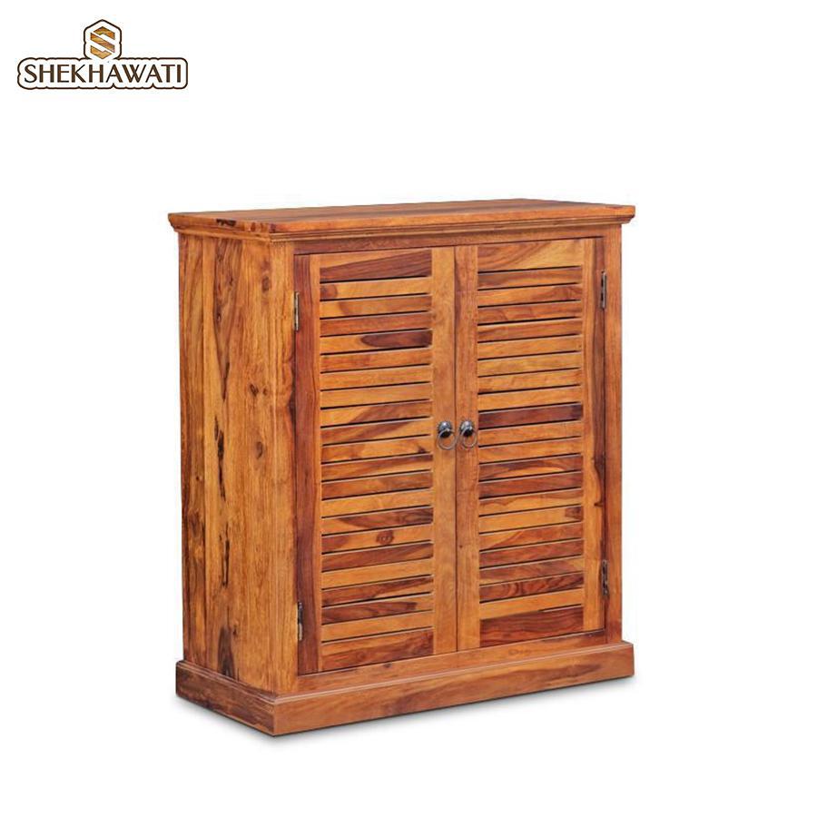 * Material: Solid Wood (Sheesham Wood) * Colour: Natural * Style: Contemporary * Features: Shelf * Cabinet Type: Shoe Storage * Accommodates 16 Pairs Of Shoes And Slippers * Delivery Condition: Assembled * Quantity: 1 Piece (Shoe Rack)